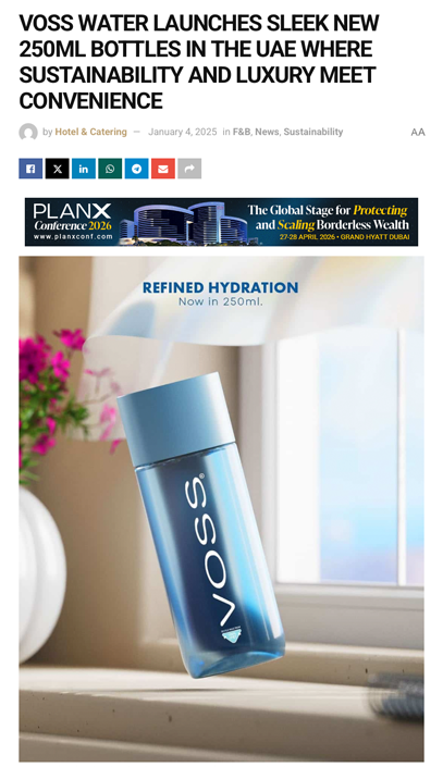 Catalyst Comms handles all PR and communications for VOSS across the UAE and the wider GCC, supporting the brand’s expanded footprint with intentional, credibility-driven collaborations across fashion, beauty, lifestyle, health & wellness, hospitality, and art sectors. Our role includes press release drafting, media pitching, influencer engagement, experiential activations, collaborations and ongoing narrative building that reinforces VOSS as the premium hydration choice for influential and curated audiences.