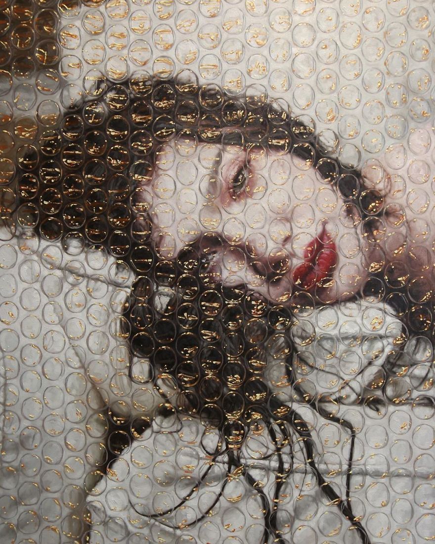 It is hard enough to create such life like paintings but to then add an optical illusion is a skill utterly beyond. Darian Mederos obviously puts a lot of time and effort into each piece which has resulted in this interesting series of paintings “wrapped” in bubble wrap.