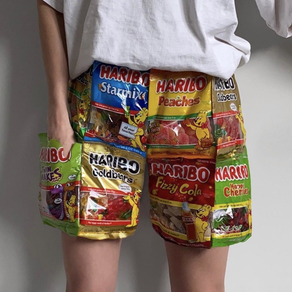 Nicole McLaughlin isn’t the only one who feels the need to have a snack always nearby but we are pretty sure no one else has the art of snacking quite like her. The former Reebok graphic designer keeps treats at her fingertips by rhousehold items from pouches of gummy candy, old fleece jackets, and even inflated bags of popcorn. Often prominently displaying logos, McLaughlin’seusing clothing, footwear, and projects provide a humorous take on branding and fashion trends.